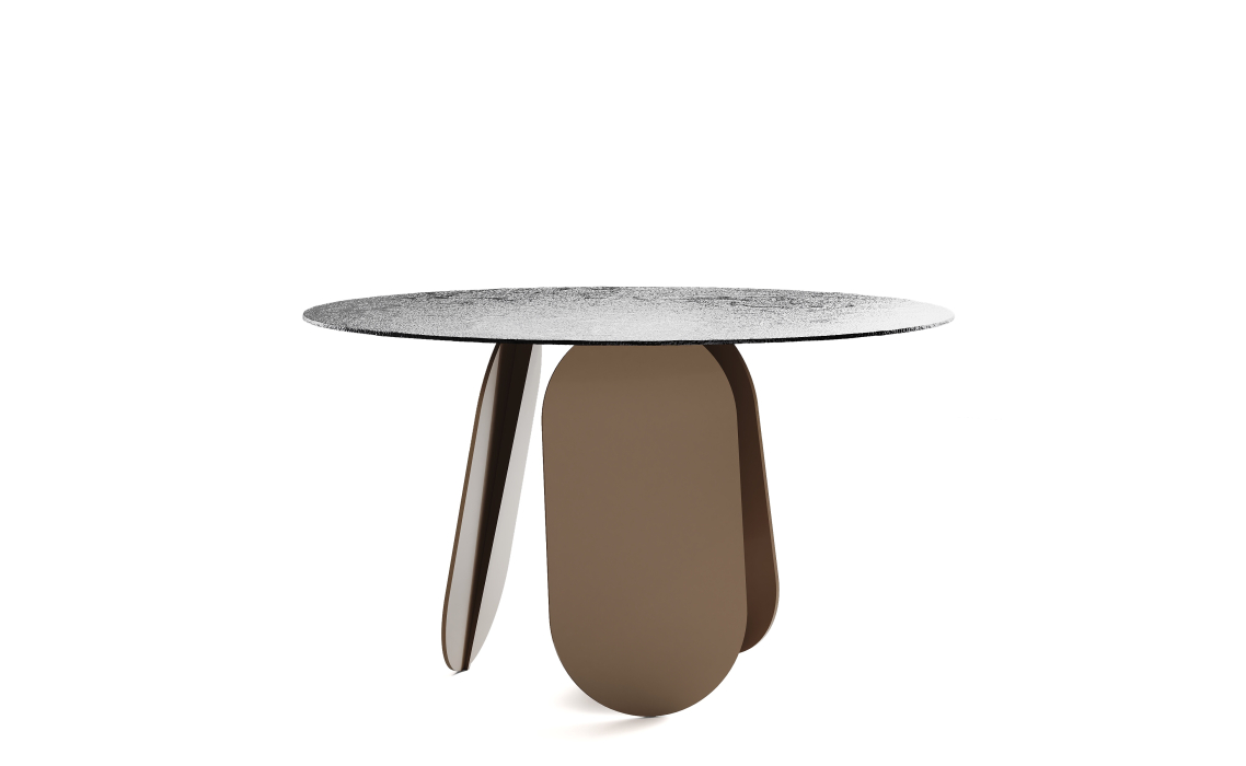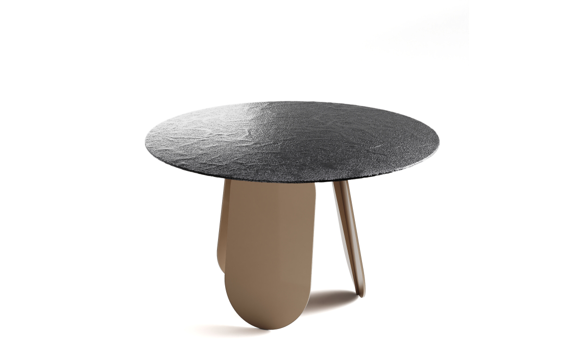 Стол обеденный POLLY DINING TABLE PERLA BEIGE SMOKY HAMMERED GLASS 140X140X75 СМ.