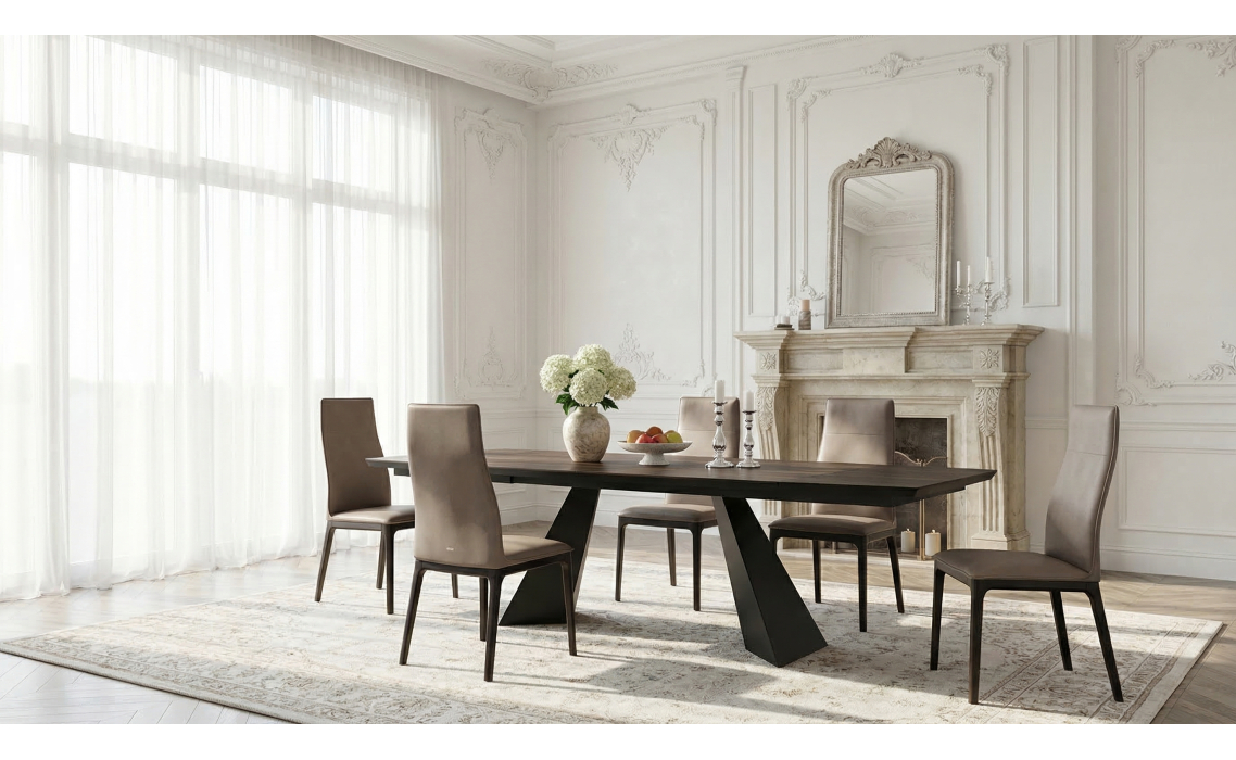 Обеденный стол PASCAL позволяет создать статусный интерьер в доме. PASCALн темно-коричневого цвета придает пространству уют, а металлическое подстолье олицетворяет надежность и прочность. Стол PASCAL имеет раздвижной механизм, при желании столешница увеличится в размерах, тем самым создав комфортные условия для всех участников трапезы.