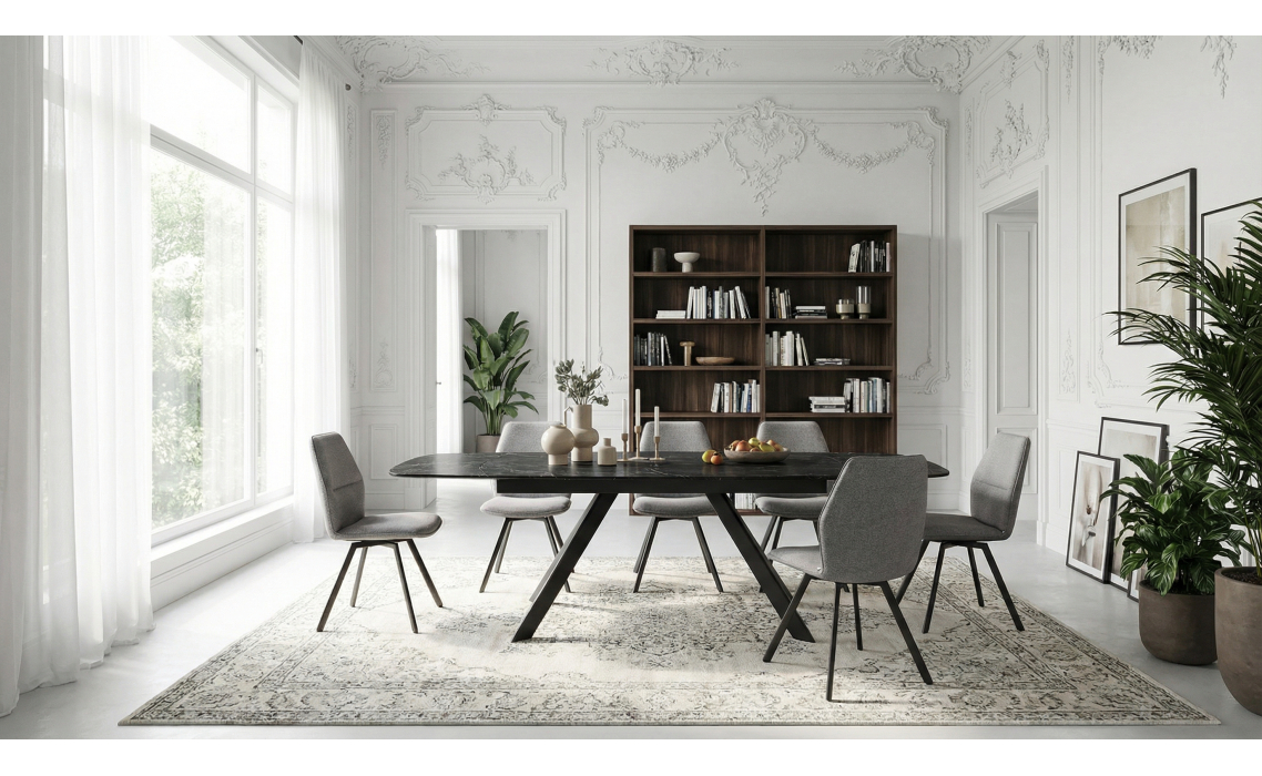 Обеденный стол JET придает пространству неповторимую атмосферу. Премиальные материалы и стильный дизайн позволили создать современную модель, достойную стать украшением вашего интерьера. Матовая столешница выполнена из керамогранита, материал отличается высокой прочностью, экологичностью и красотой.