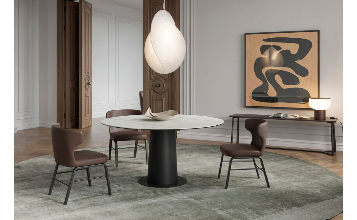 Стол обеденный SPIN DINING TABLE BLACK MATT GREY MARBLE 150X150X75 СМ.