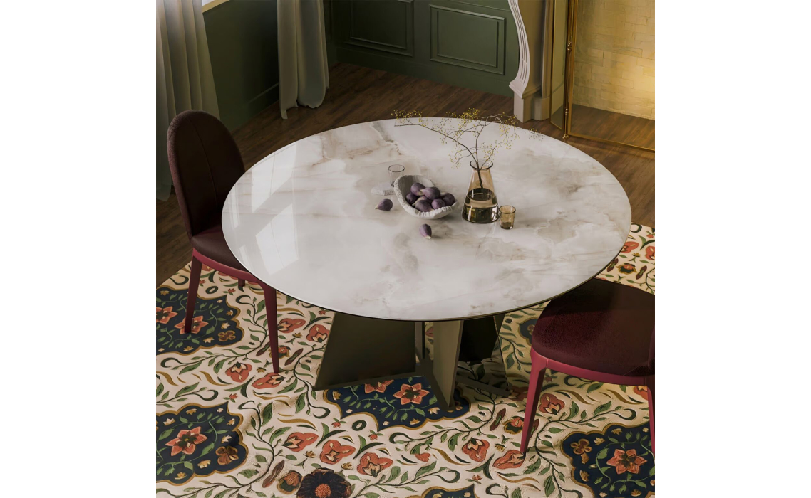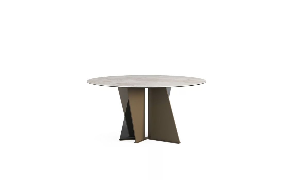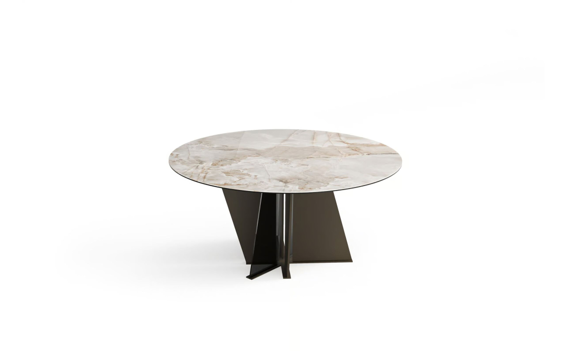 Стол обеденный VERA DINING TABLE BROWN GLOSSY BEIGE MARBLE 150X150X75 СМ.