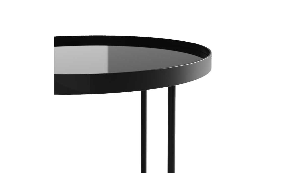 Тонкая, но прочная металлическая опора придает столу легкость. Глянцевая столешница из закаленного стекла темно-серого оттенка наделяет стол особым шармом и глубиной.