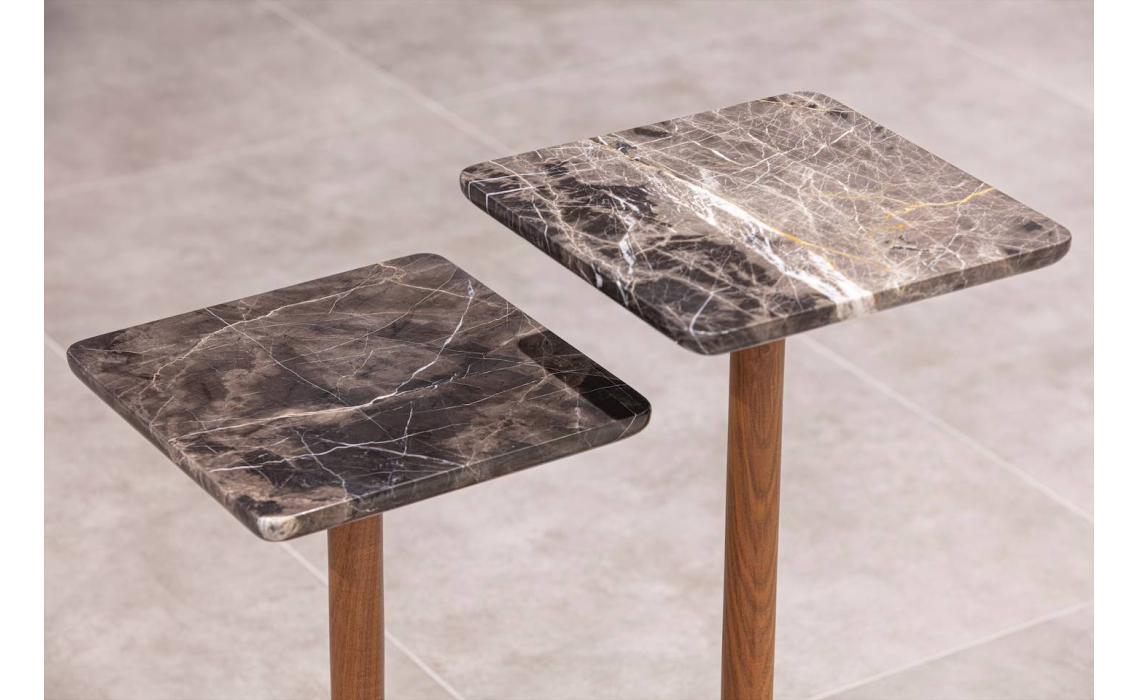 Стол приставной HERMES SIDE TABLE Naturel Walnut rivera marble 26X26X63 СМ.