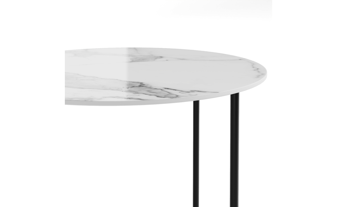 Приставной стол PARADISO в белом цвете — эталон элегантности. Гладкая глянцевая текстура керамогранита с завораживающим мраморным рисунком придает столу безупречный облик. Металлическое подстолье обеспечивает надежность и долговечность, завершая образ стола, который станет стильным и функциональным элементом дома.