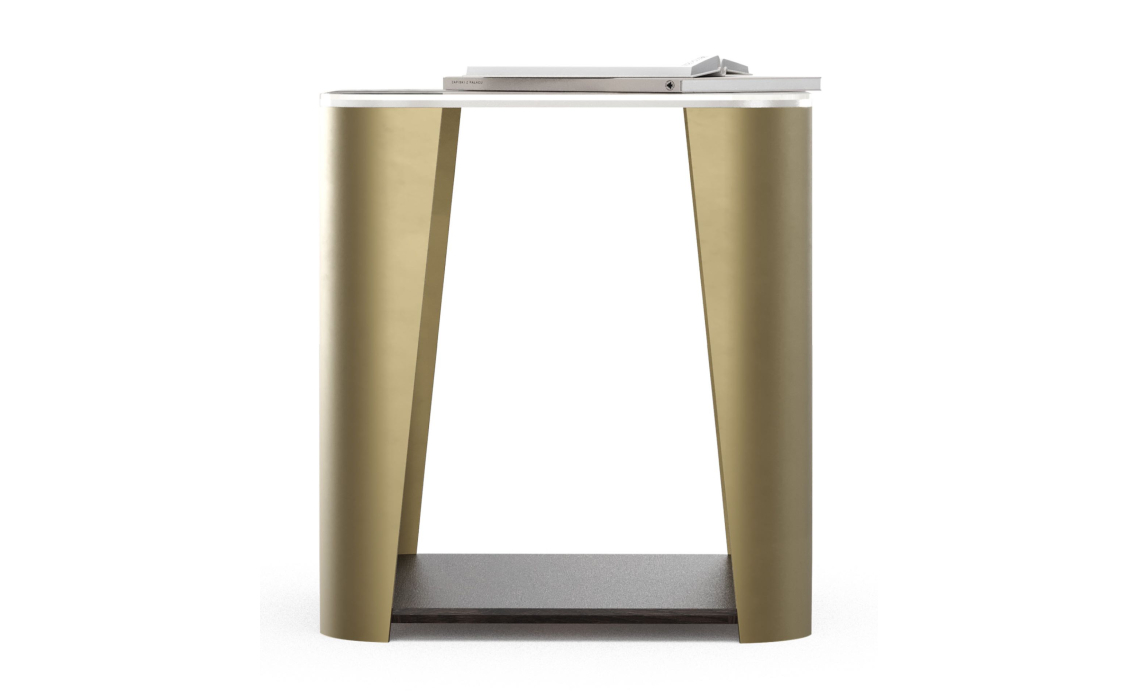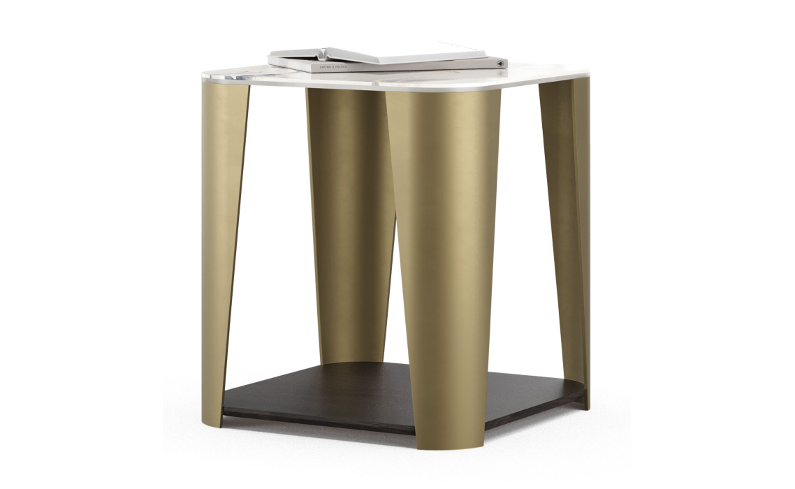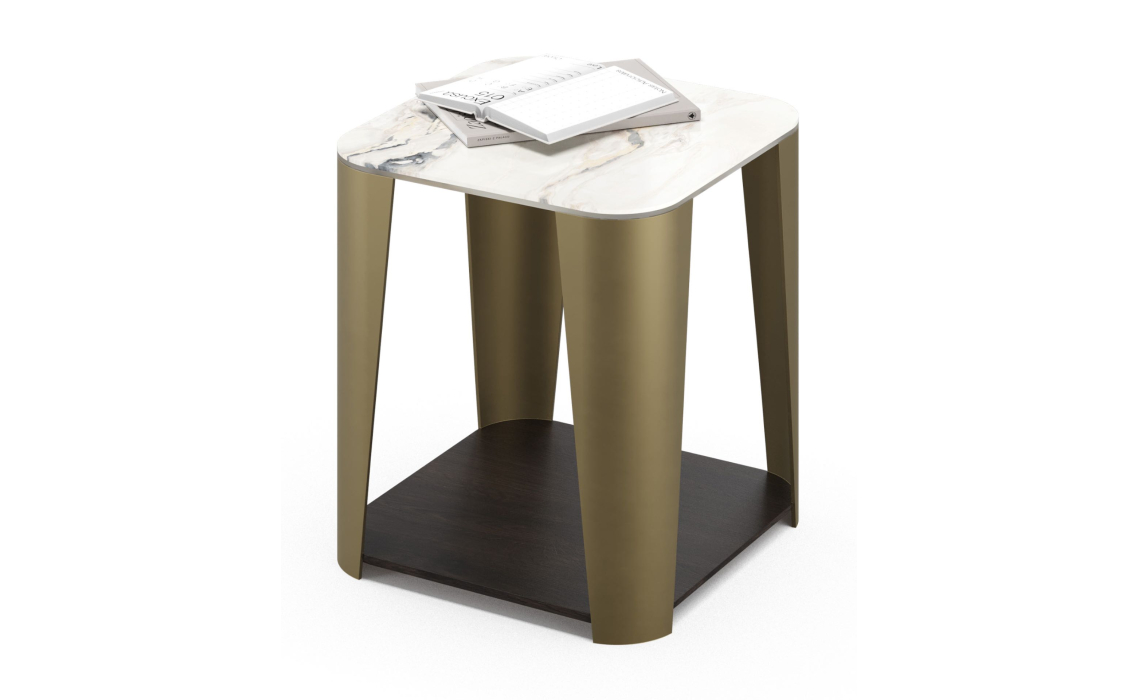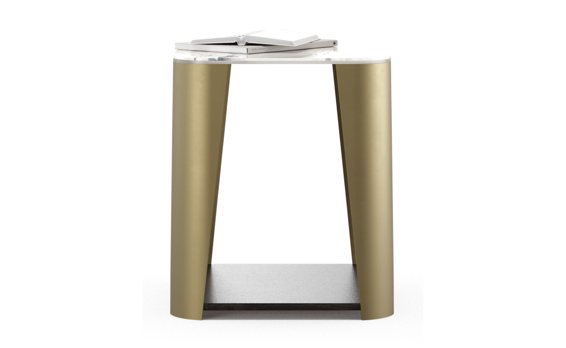Журнальный столик Breda — изящный и функциональный предмет мебели. Нижняя полка идеально подходит для хранения вещей, а закругленная керамическая столешница добавляет столу изысканную элегантность. Прочные латунные ножки обеспечивают долговечность конструкции.