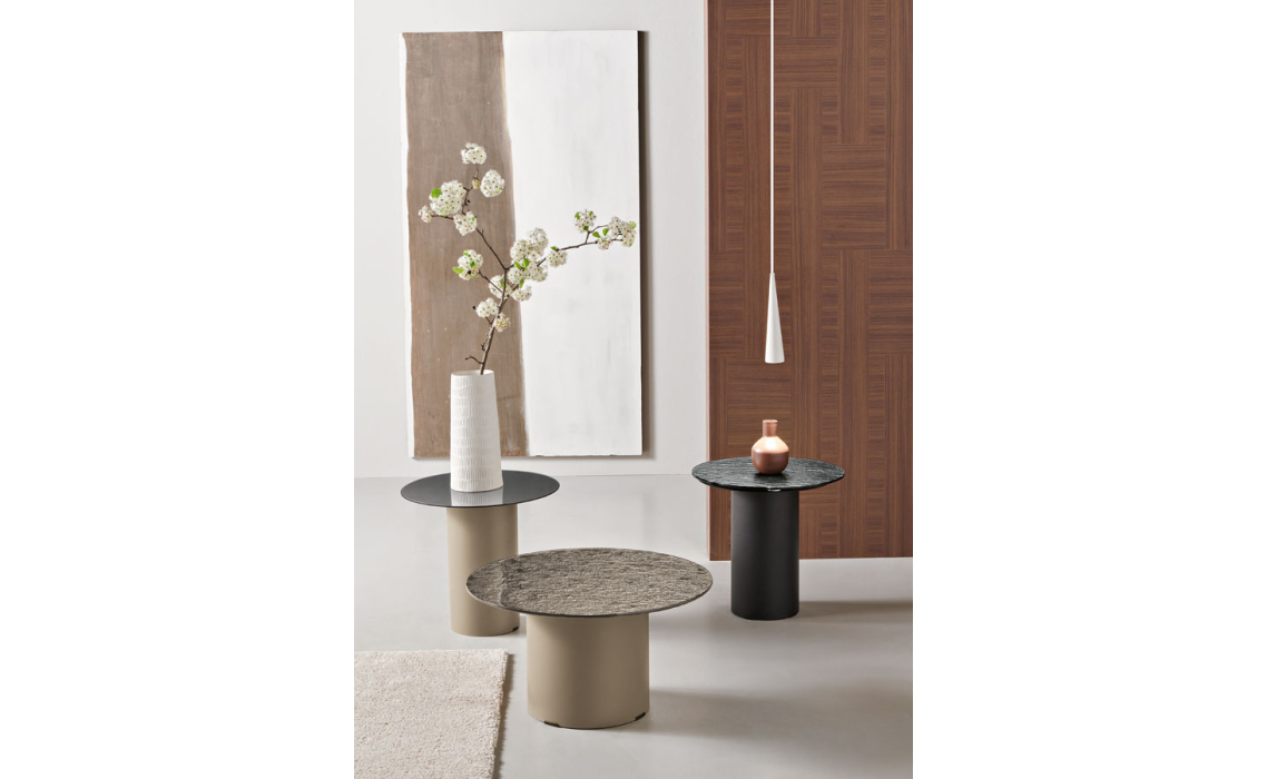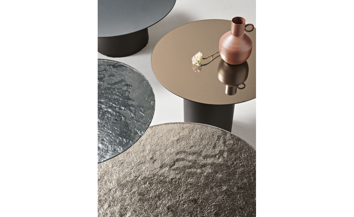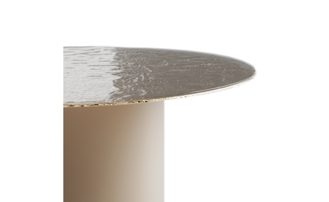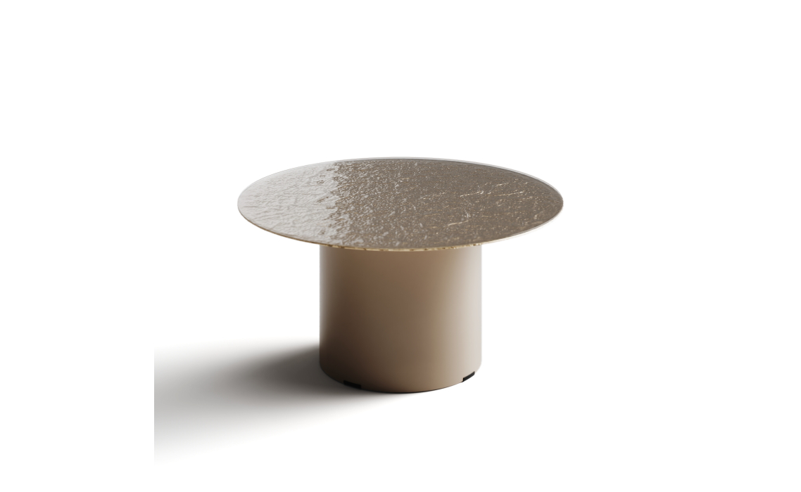 Теплый бронзовый оттенок столешницы с рельефной поверхностью дарит модели дополнительное обаяние. Бежевый цвет опоры завершает безупречный облик стола. Журнальный стол NEBULA — искусное сочетание стиля и функциональности.