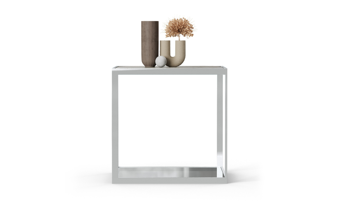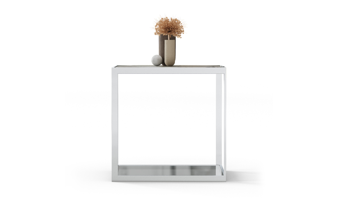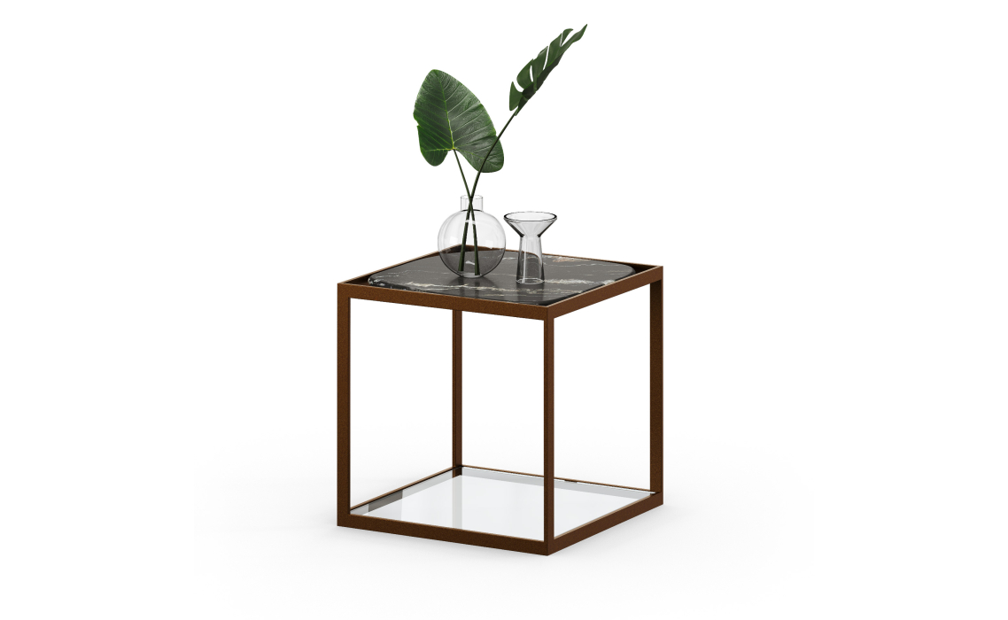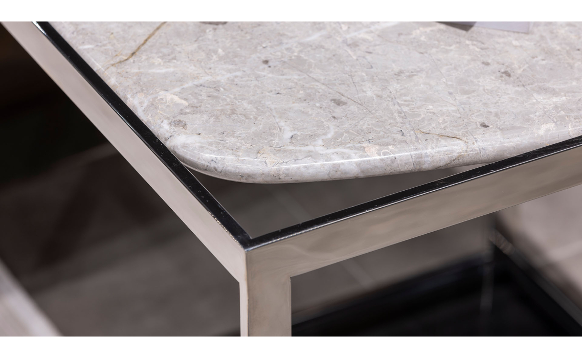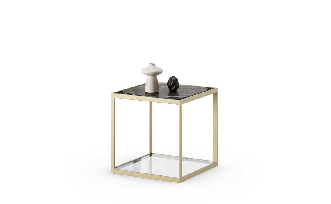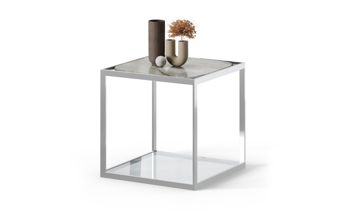 Стол журнальный ELABOR SIDE TABLE Glossy metal MARBLE AURA 55X55X55 СМ.