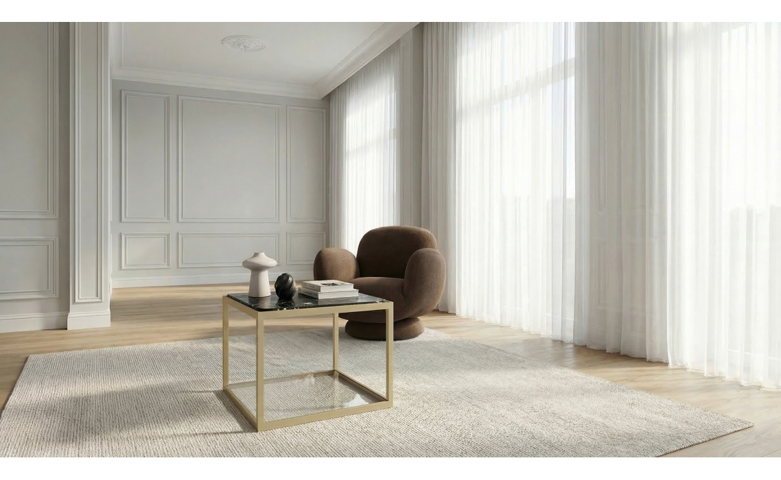 Элегантный журнальный столик Elabor идеально дополнит вашу гостиную. Этот столик универсален: его можно использовать как сервировочный стол или как подставку для декоративных элементов. Сочетание мрамора и динамичных линий металлического каркаса придаст вашему пространству современный и неповторимый вид.