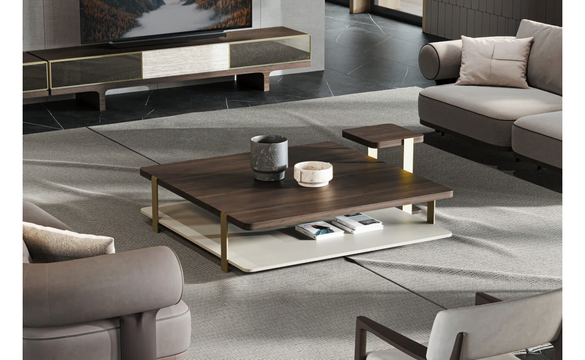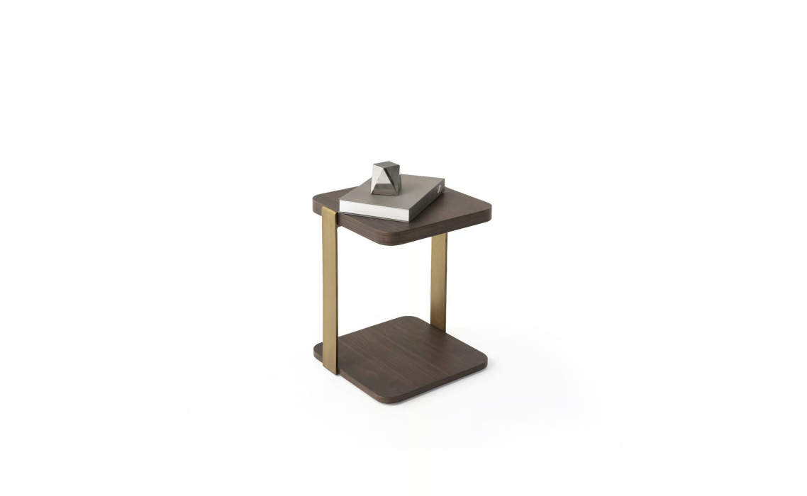 Стол журнальный HANNA SIDE TABLE BRASS AMERICAN WALNUT 40X40X50 СМ.