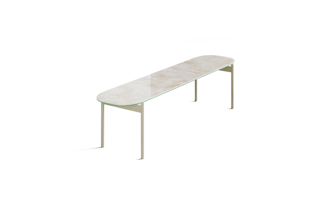 Современный журнальный стол LONG станет изысканным дополнением вашего интерьера. Прочный керамогранит гарантирует долговечность и простоту в уходе. Отличительной чертой стола LONG является длинная глянцевая столешница овальной формы. Кремовый цвет помогает визуально расширить пространство, наполняя его светом и легкостью.