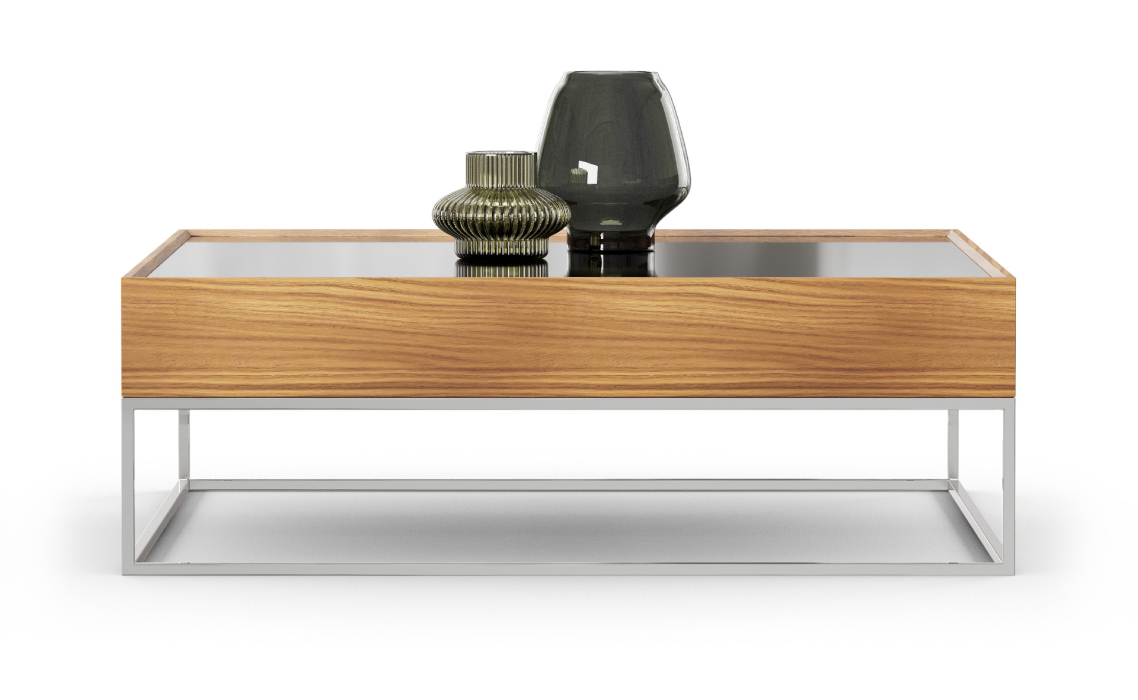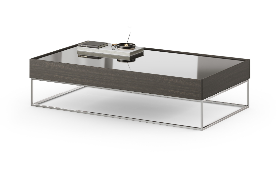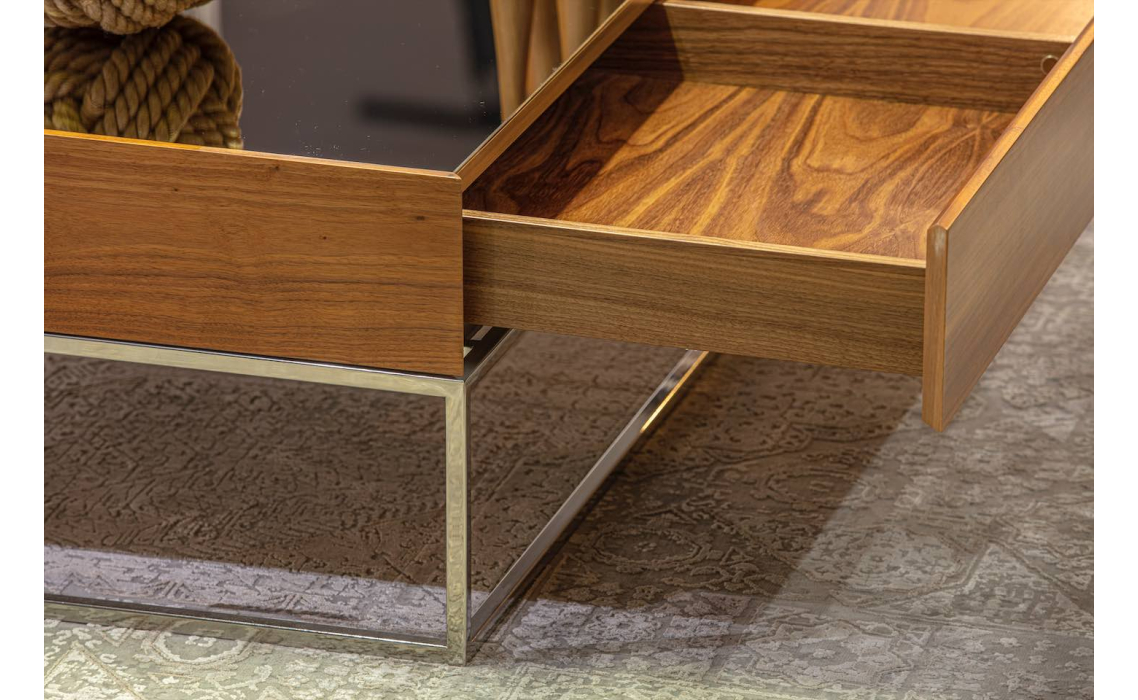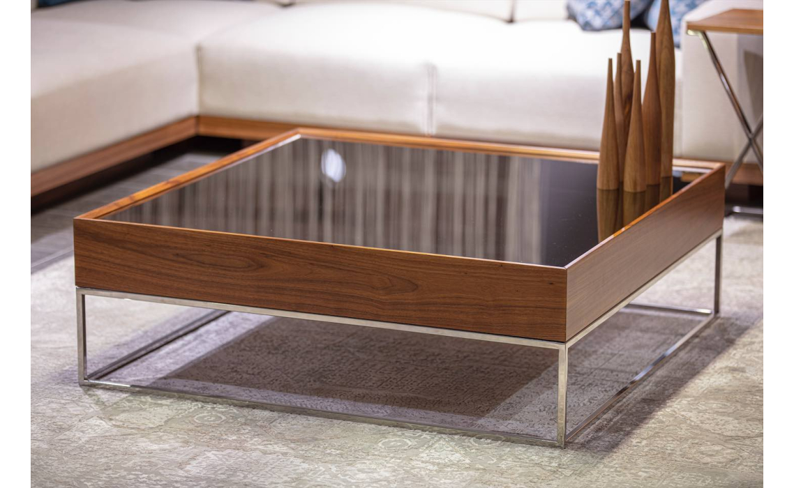Стол журнальный NEWS COFFEE TABLE COPPER ELECTROSTATIC MIRROR BRONZE Natural walnut veneer 110X110X3