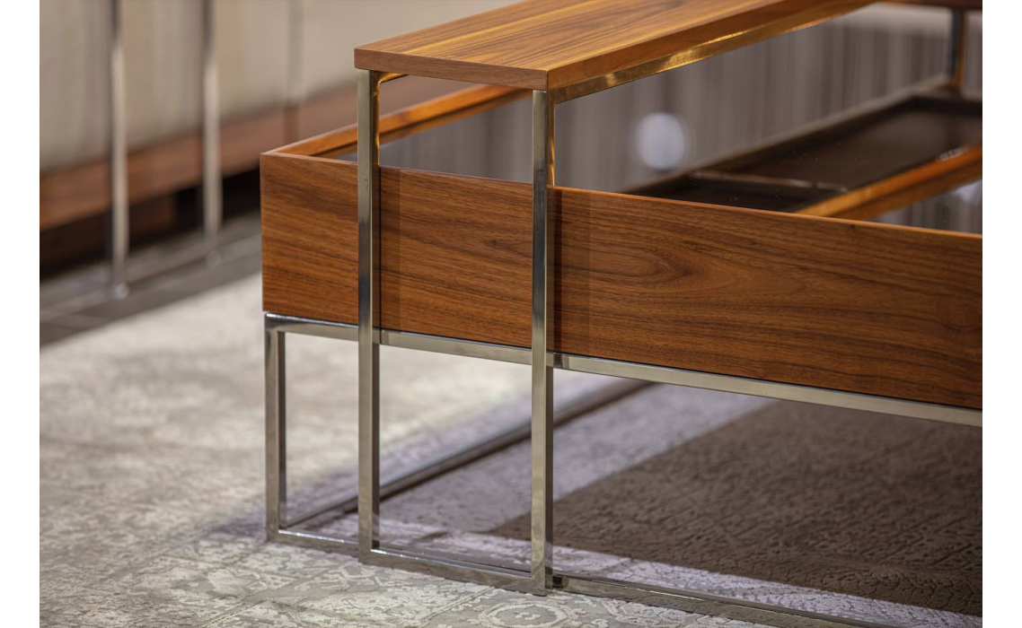 Журнальный столик News — роскошный элемент интерьера. Его строгие геометрические формы и зеркальная поверхность создают ощущение легкости и простора. Удобные ящики, открывающиеся с двух сторон, обеспечивают дополнительное место для хранения. News — это сочетание элегантности и практичности в одном изделии.