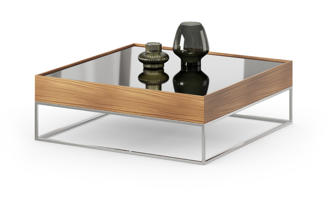 Стол журнальный NEWS COFFEE TABLE Nat. wal. veneer MIRROR SMOKE 110X110X37 СМ.