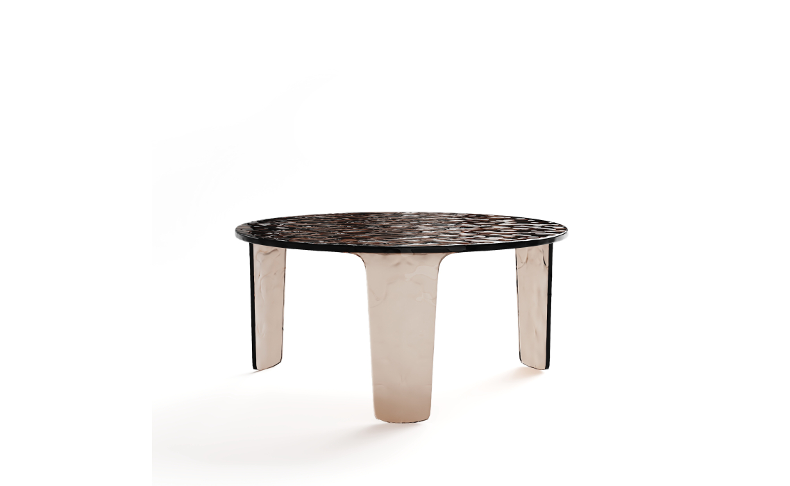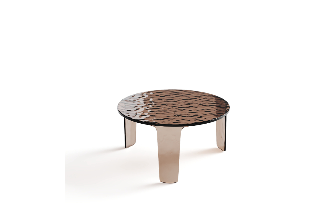 Журнальный стол AURA из закаленного стекла трендового оттенка — сепия имеет неповторимый футуристический дизайн. Прозрачная текстура и рельеф делают его отличным выбором для интерьеров в стиле хай-тек и урбан, придавая им легкость и современность.