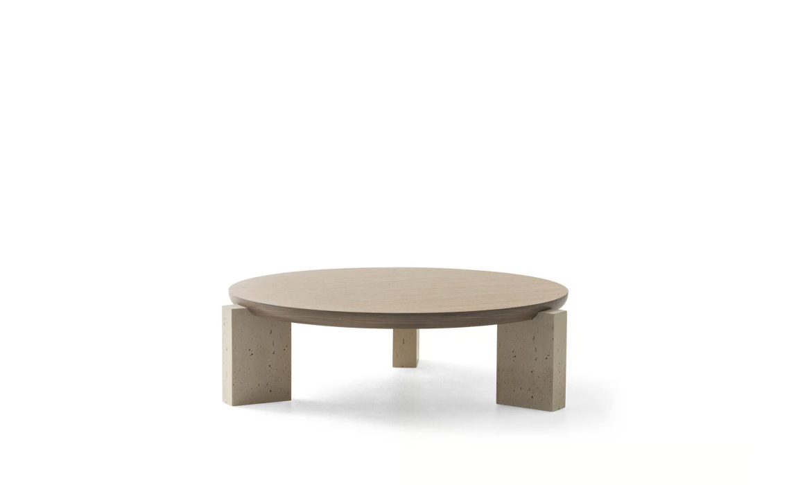 Стол журнальный NOTA COFFEE TABLE TRAVERTINE THERMO OAK 105X105X31 СМ.