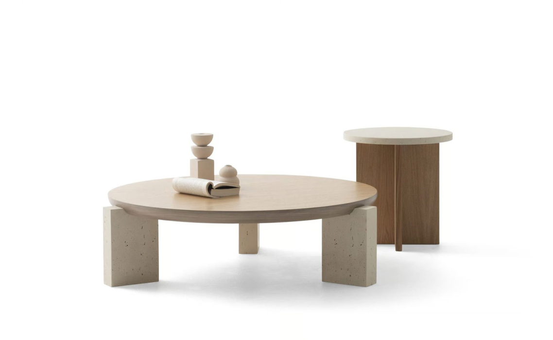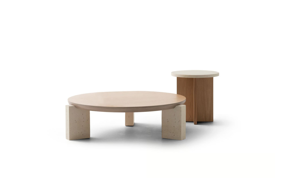 Стол журнальный NOTA SIDE TABLE MASSIVE WOOD Beige travertine 43X43X47 СМ.