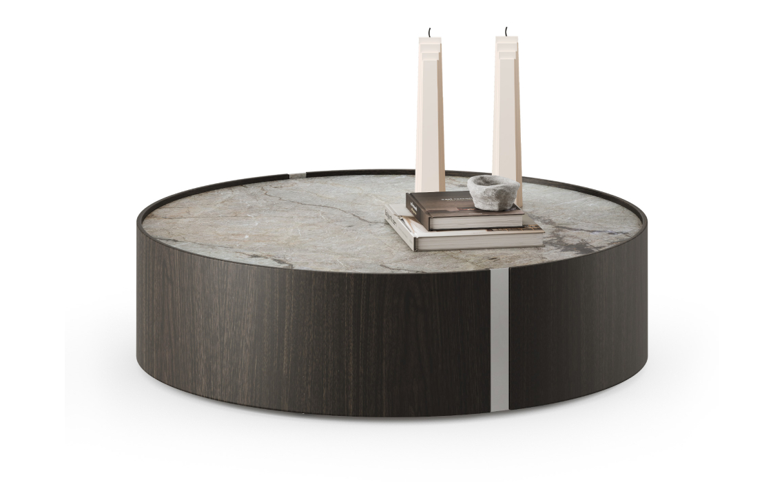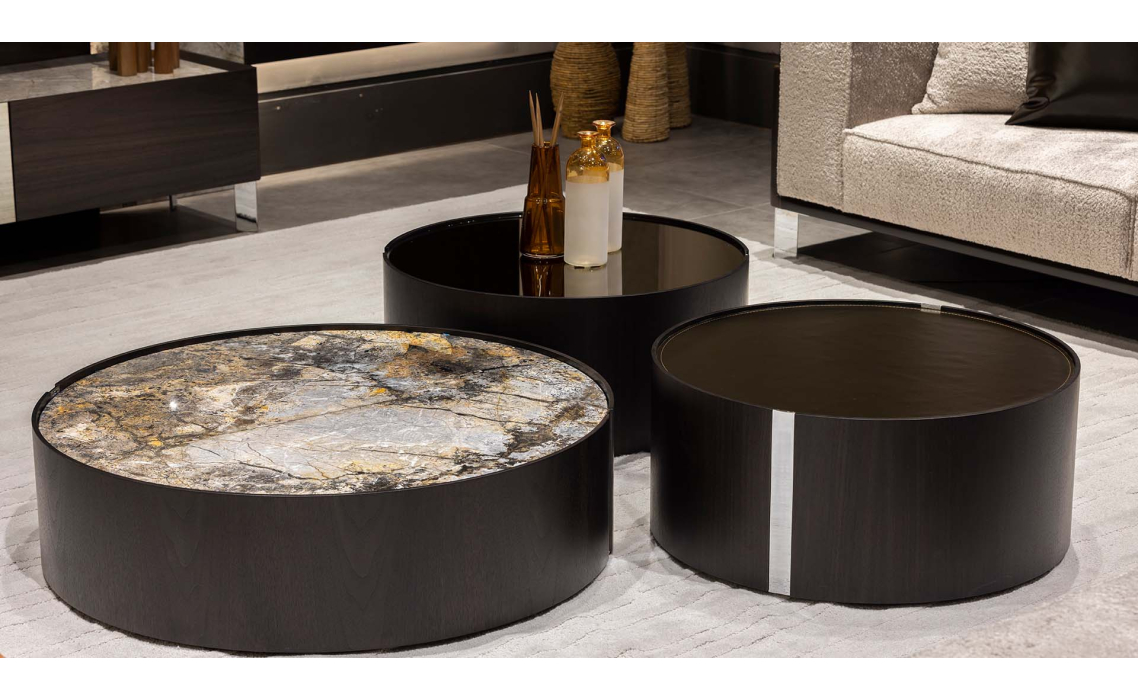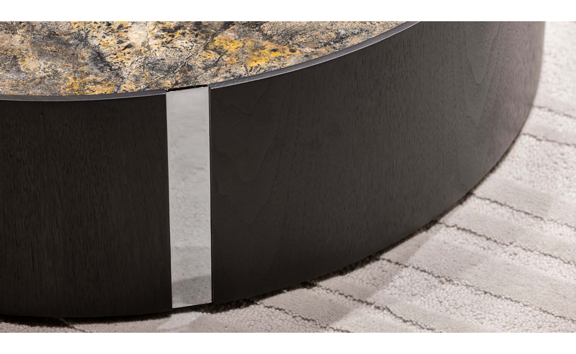 Стол журнальный NOX SIDE TABLE Anthracite Walnut Veneer MARBLE AURA 100X100X28 СМ.