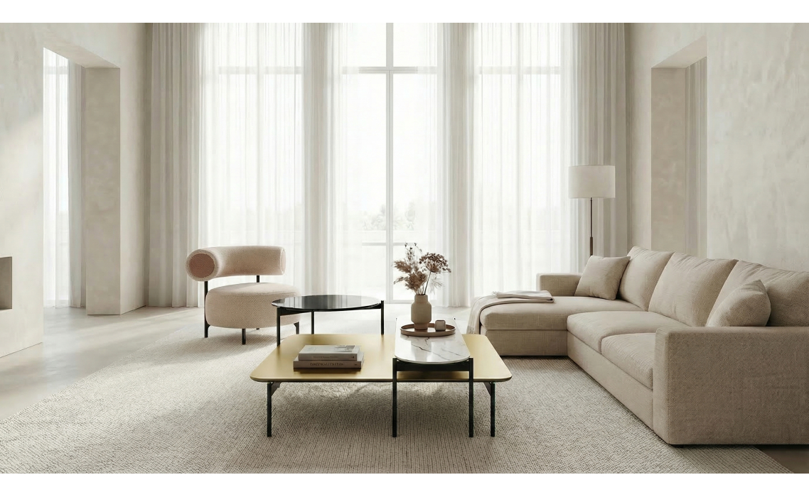 Журнальный стол ROUND в современном стиле станет функциональным дополнением вашей зоны отдыха. Матовая столешница из керамогранита обладает прочностью и устойчивостью к загрязнениям. Лаконичные металлические ножки дополняют его элегантный дизайн.