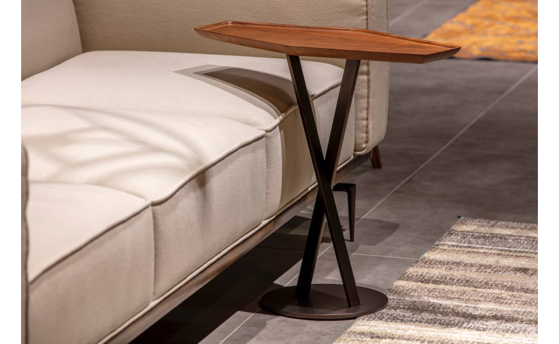 Стол журнальный VINCA C NESTING TABLE Glossy metal Natural walnut veneer 60X25X54 СМ.