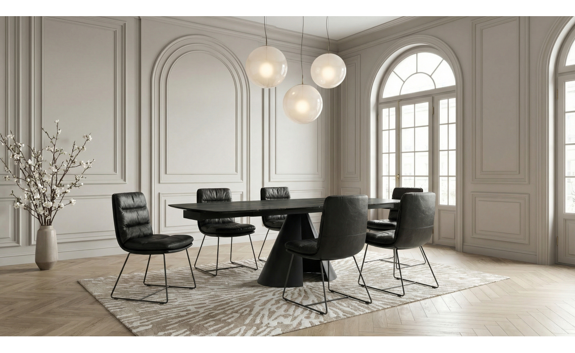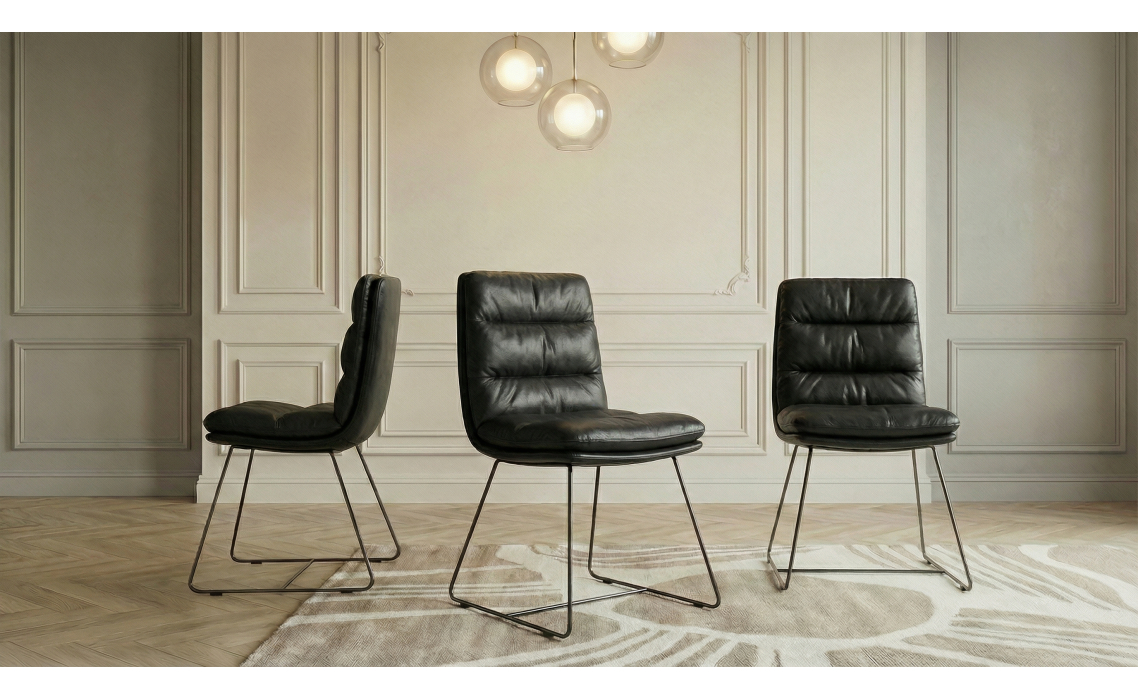 Интерьерный стул CLASS выполнен из премиальной кожи. Черный оттенок придает модели изысканный и солидный вид. Стул сочетает в себе классический стиль и современные тенденции дизайна, создавая гармонию между традициями и инновациями.