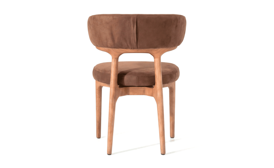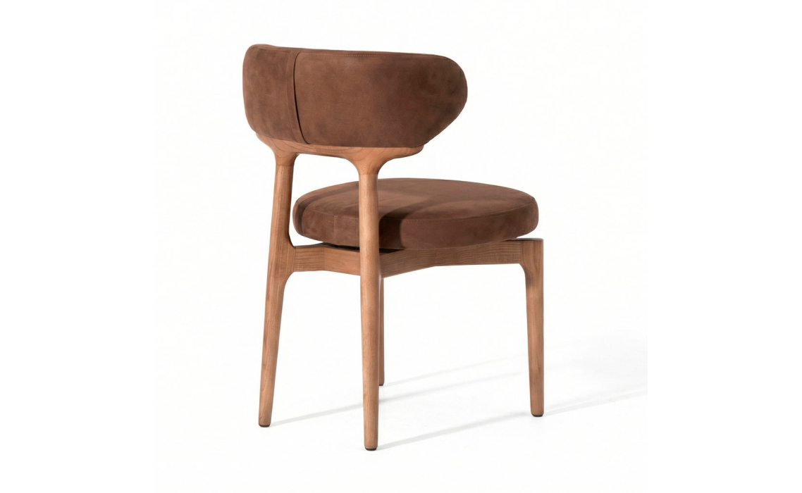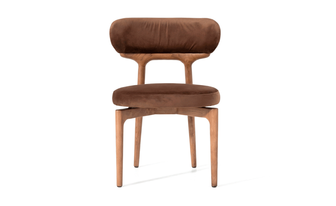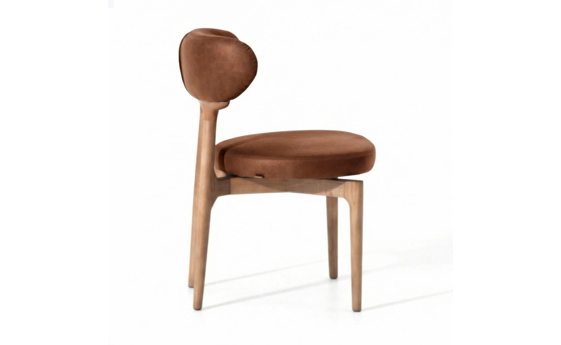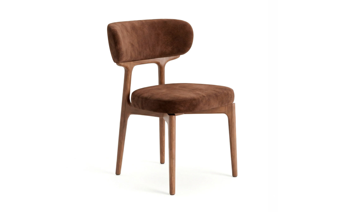 Силуэт стула Siena выстроен на контрасте деревянного каркаса и спокойной текстильной обивки. Каркас в тёплом ореховом оттенке придаёт композиции чёткость и устойчивость, а мягкие линии сиденья и спинки создают ощущение уюта и визуальной легкости.