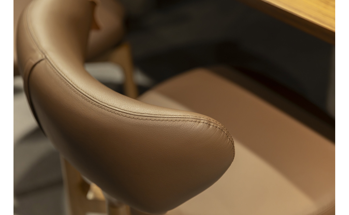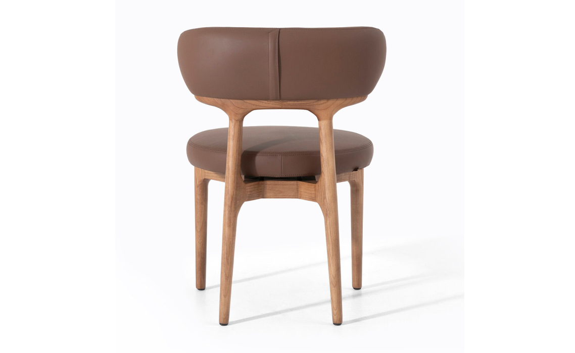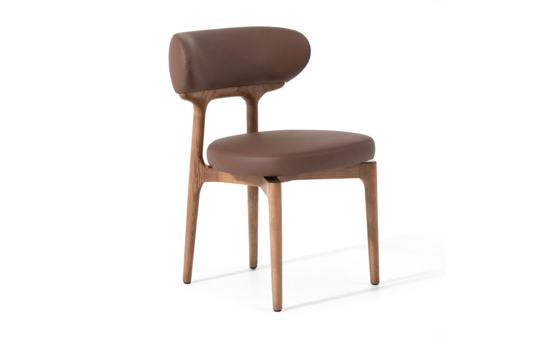 Силуэт стула Siena выстроен на контрасте деревянного каркаса и сдержанной кожаной обивки. Дерево теплого орехового оттенка придает структуру пространству, а лаконичные объемы сиденья и спинки добавляют ощущение уюта и визуальной легкости.