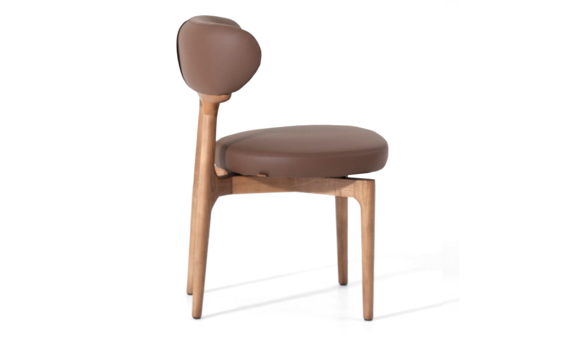 Изогнутая спинка аккуратно поддерживает естественное положение позвоночника. Стул одинаково уместен за обеденным столом, в рабочей зоне или в камерном пространстве кухни-гостиной. Мягкая обивка выглядит сдержанно и благородно, подчёркивая геометрию каркаса.