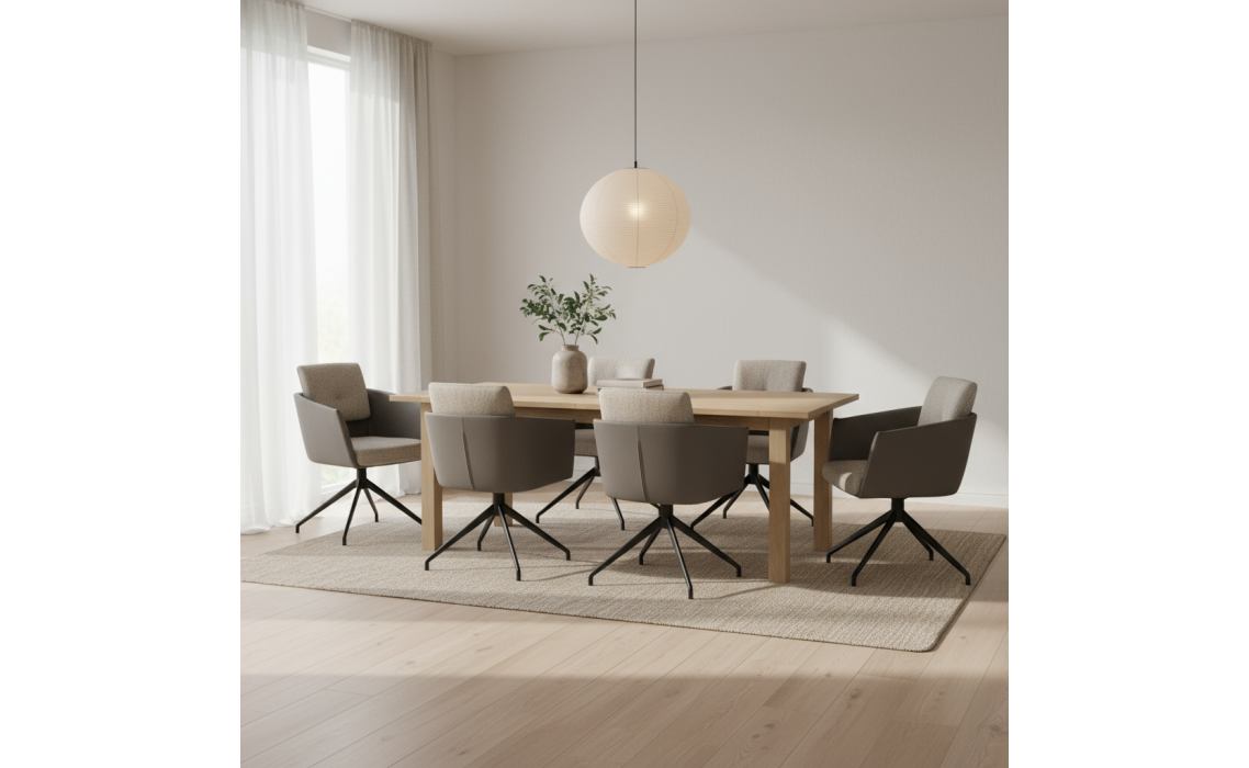 Стулья NORR MOBLER - Возможно изменение типа и цвета ткани обивки, а также цвета ножек и основания.