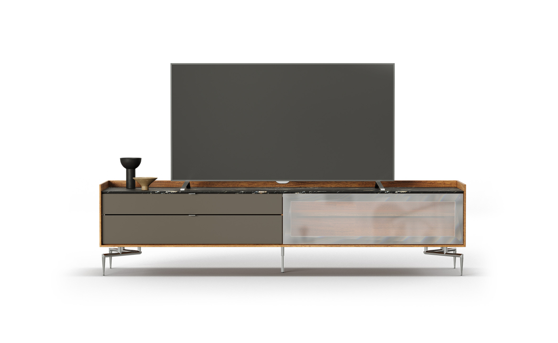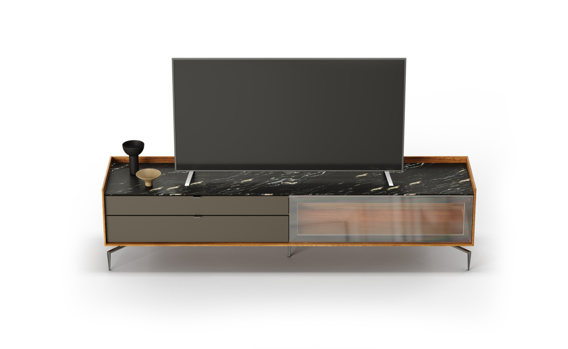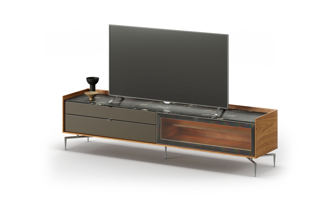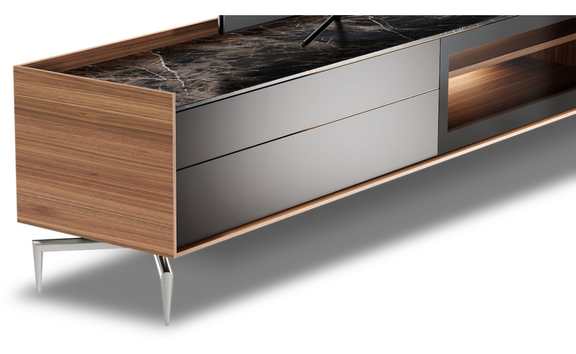 Тумба под ТВ MEST TV STAND Natural walnut MARBLE AURA Reflective glass 165X50X55 СМ.