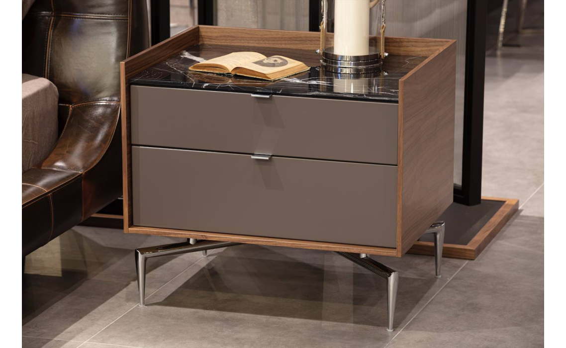 Тумба прикроватная MEST NIGHTSTAND Natural walnut Rivera marble Matte LK17 Brown 62X48X55 СМ. (FUG00