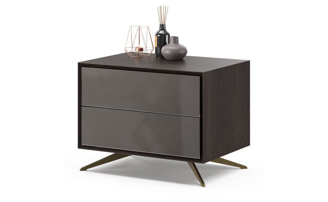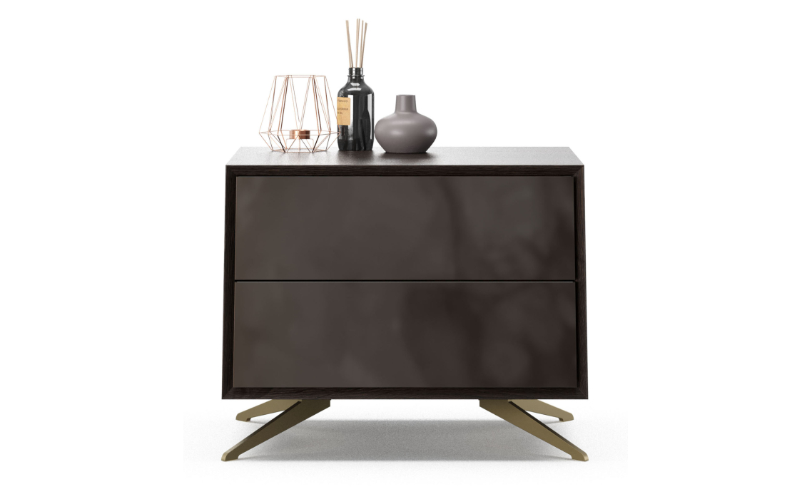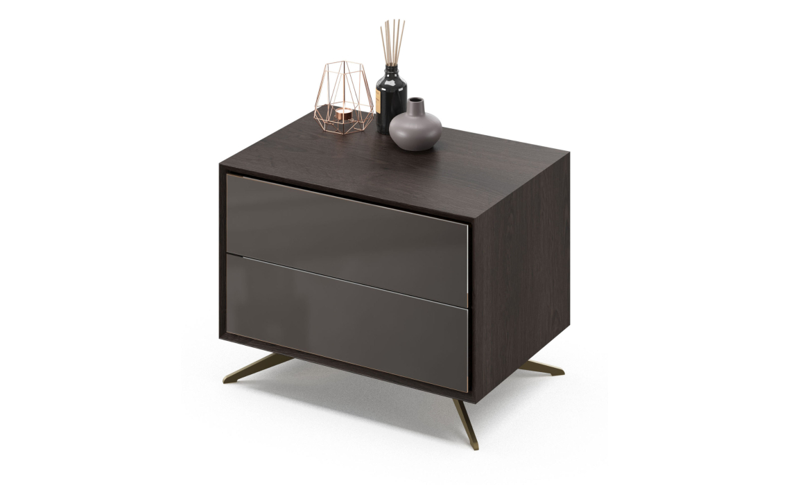 Прикроватная тумба Norm с металлическими ножками и дверцами из окрашенного стекла, подчеркнет элегантную роскошь и станет прекрасным дополнением в вашей спальне.