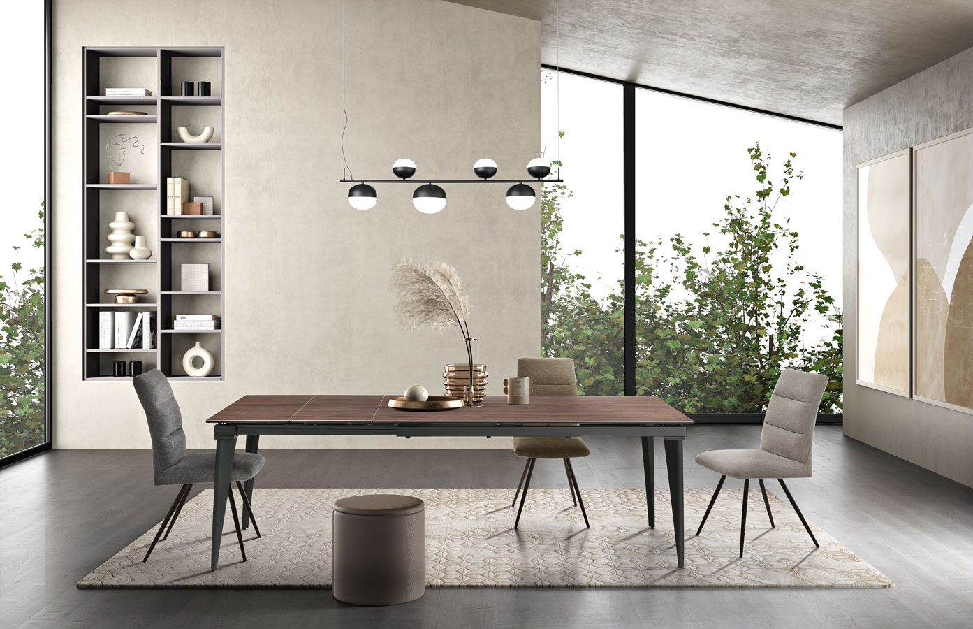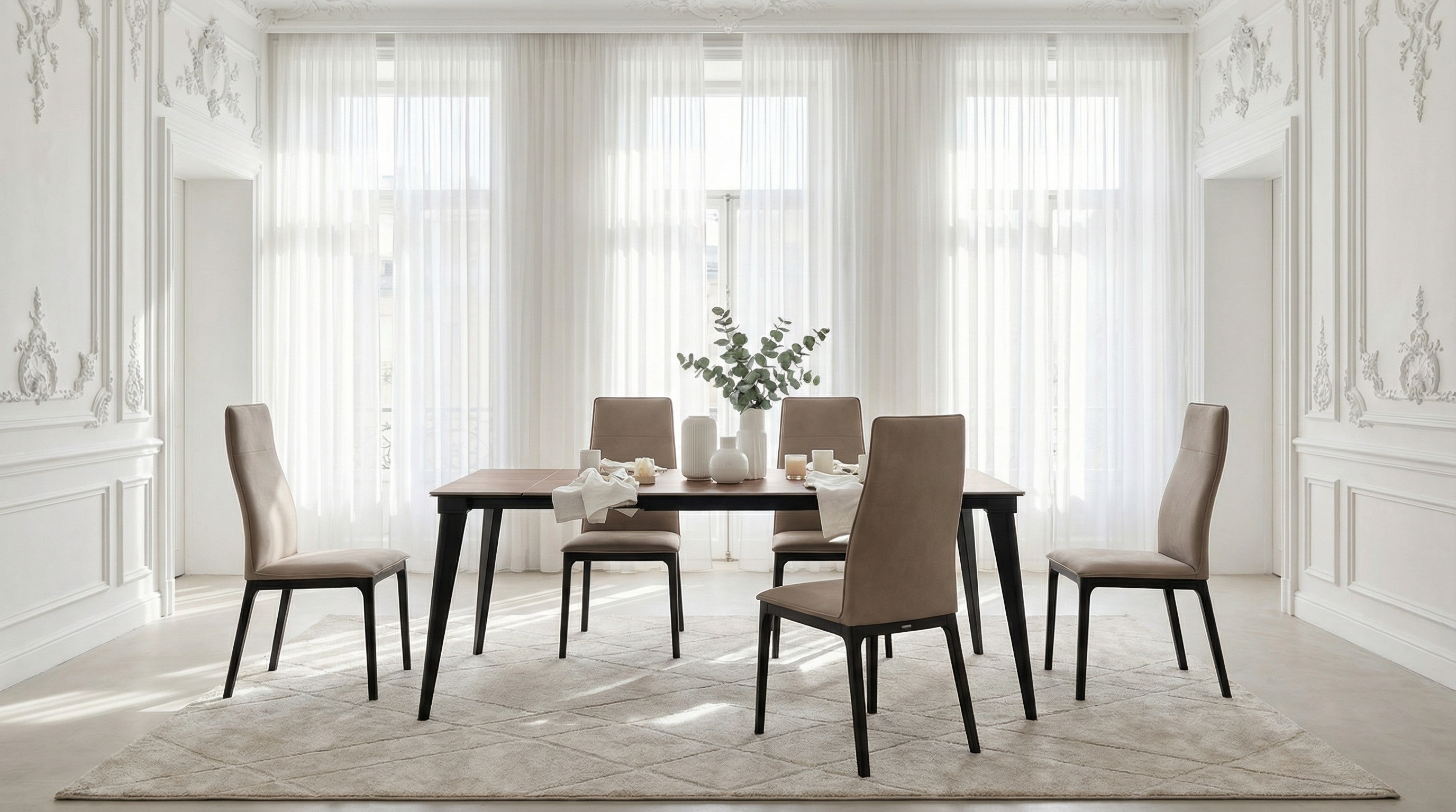 Коллекция обеденных столов Austri классической формы идеально вписывается в разные интерьерные решения.