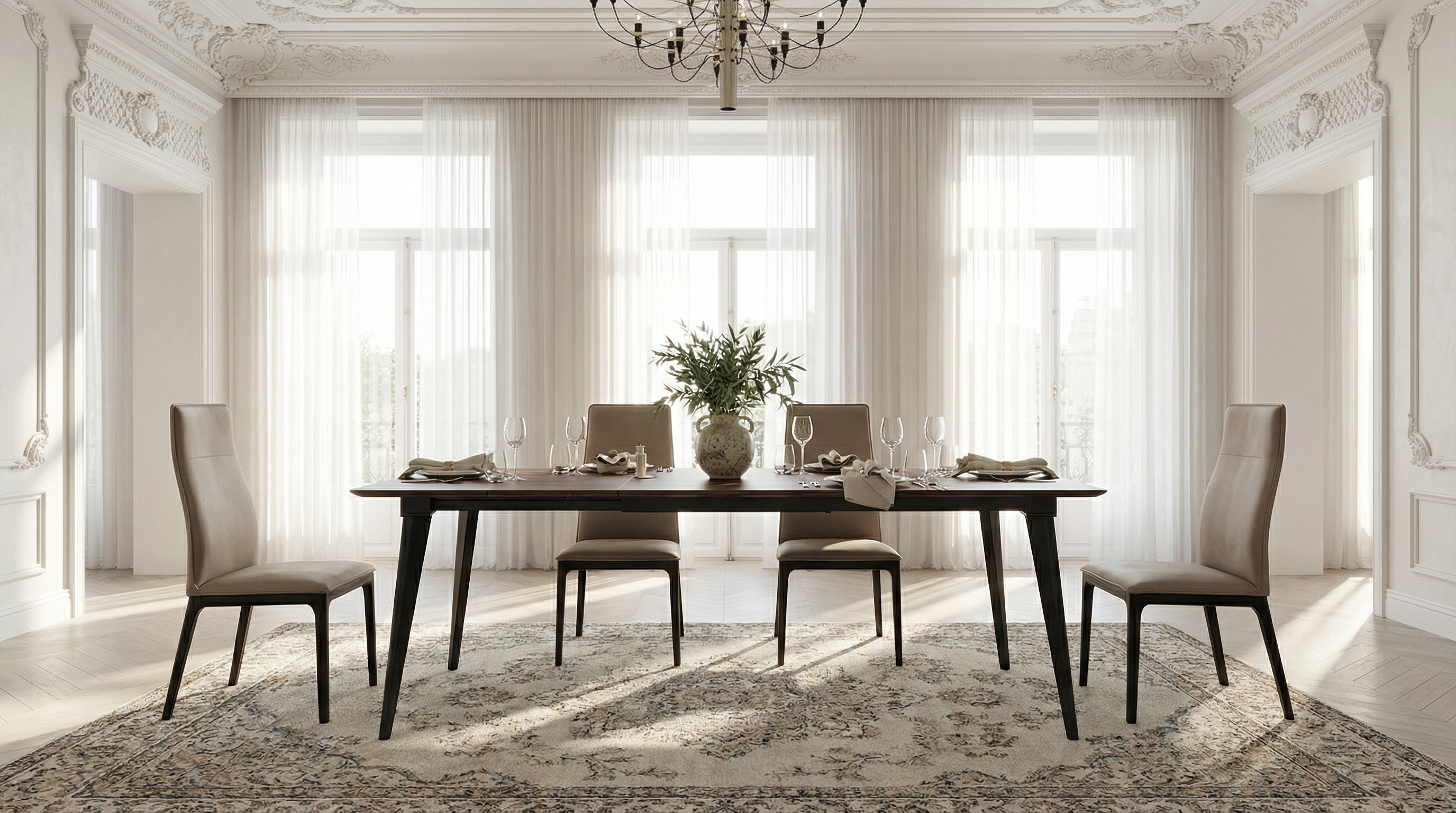 Столы Austri с раздвижным механизмом позволят разместить как можно больше людей за трапезой. Эта продуманная функциональность делает мебель идеальной как для повседневных семейных обедов, так и для торжественных приемов, даря комфорт и ощущение единства.