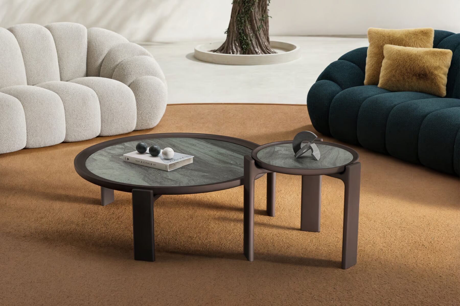 Коллекция представлена в двух форматах журнальных столов. Оба предмета объединяет продуманная геометрия и внимание к деталям — столешницы устойчивы к повседневному использованию, а металлическое основание обеспечивает надежность и долговечность.