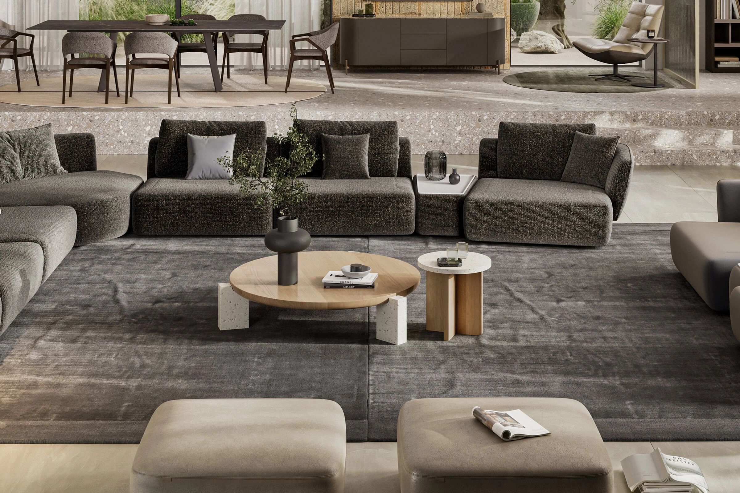 Коллекция Nota строится на контрасте природных текстур и геометрической чистоты форм. Журнальные столики объединены общей эстетикой.