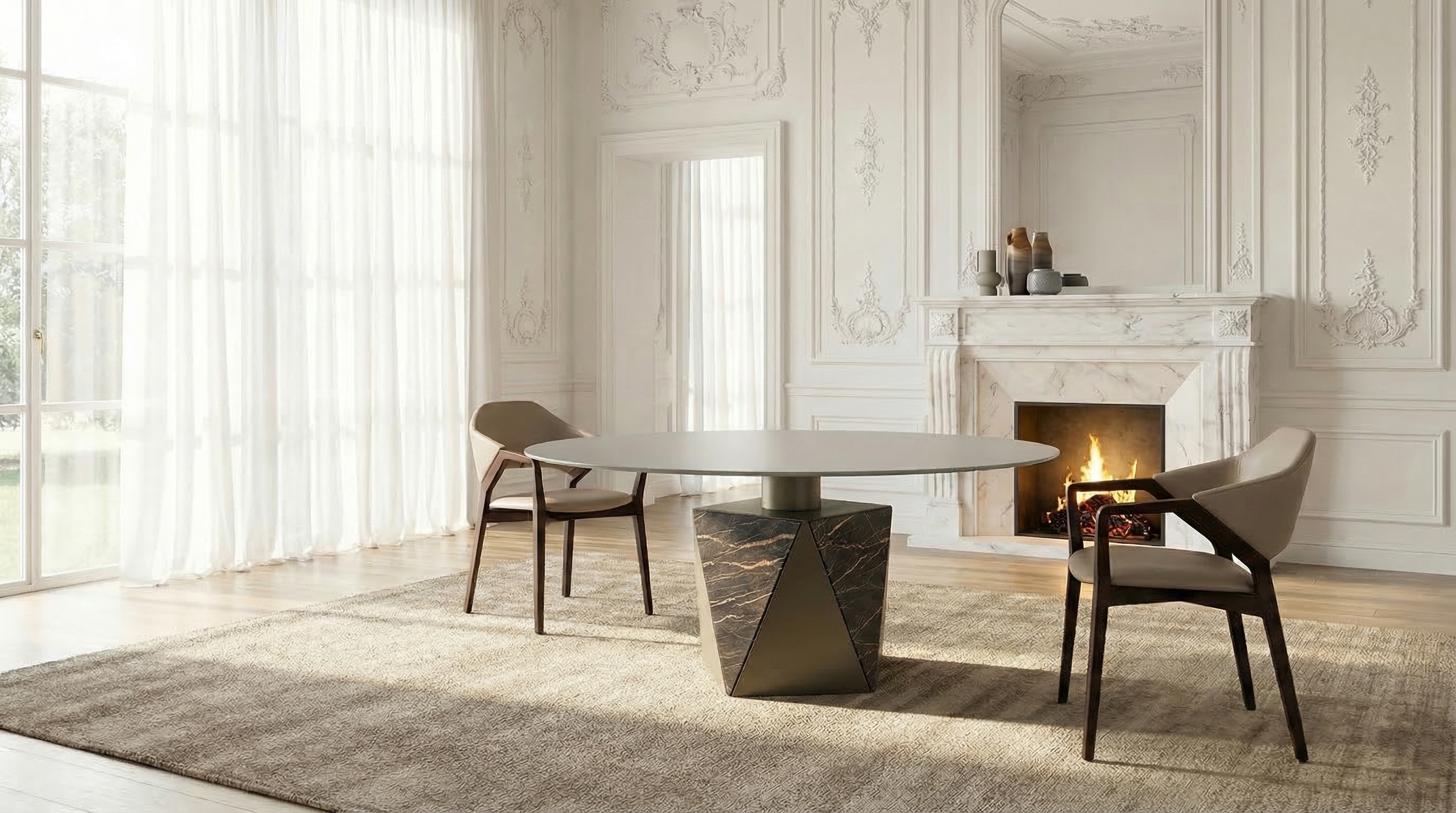 Столы из коллекции Pentagon становятся центром притяжения в интерьерах модерн, минимализм или авангард, привнося в пространство ощущение архитектурной выразительности и продуманной сложности.