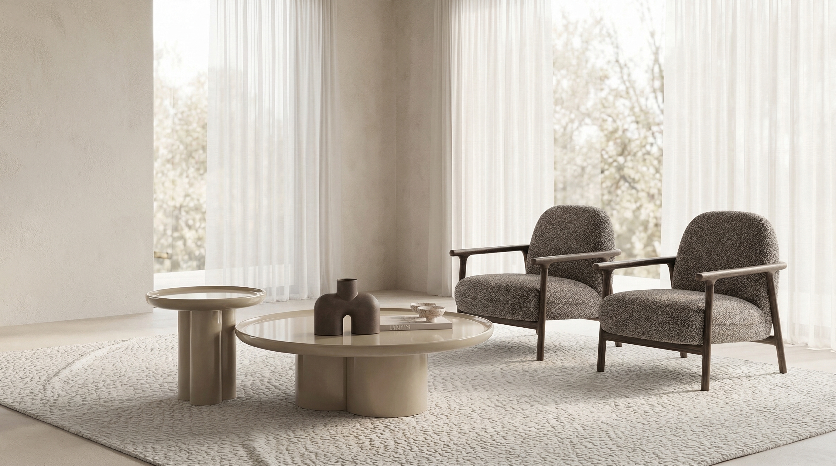 Столы коллекции Tridente органично вписываются в современные интерьеры с акцентом на минимализм и тактильные материалы. Мебель уместна как в зоне отдыха, так и в спальне или гостиной — она не перегружает пространство, а деликатно его дополняет.