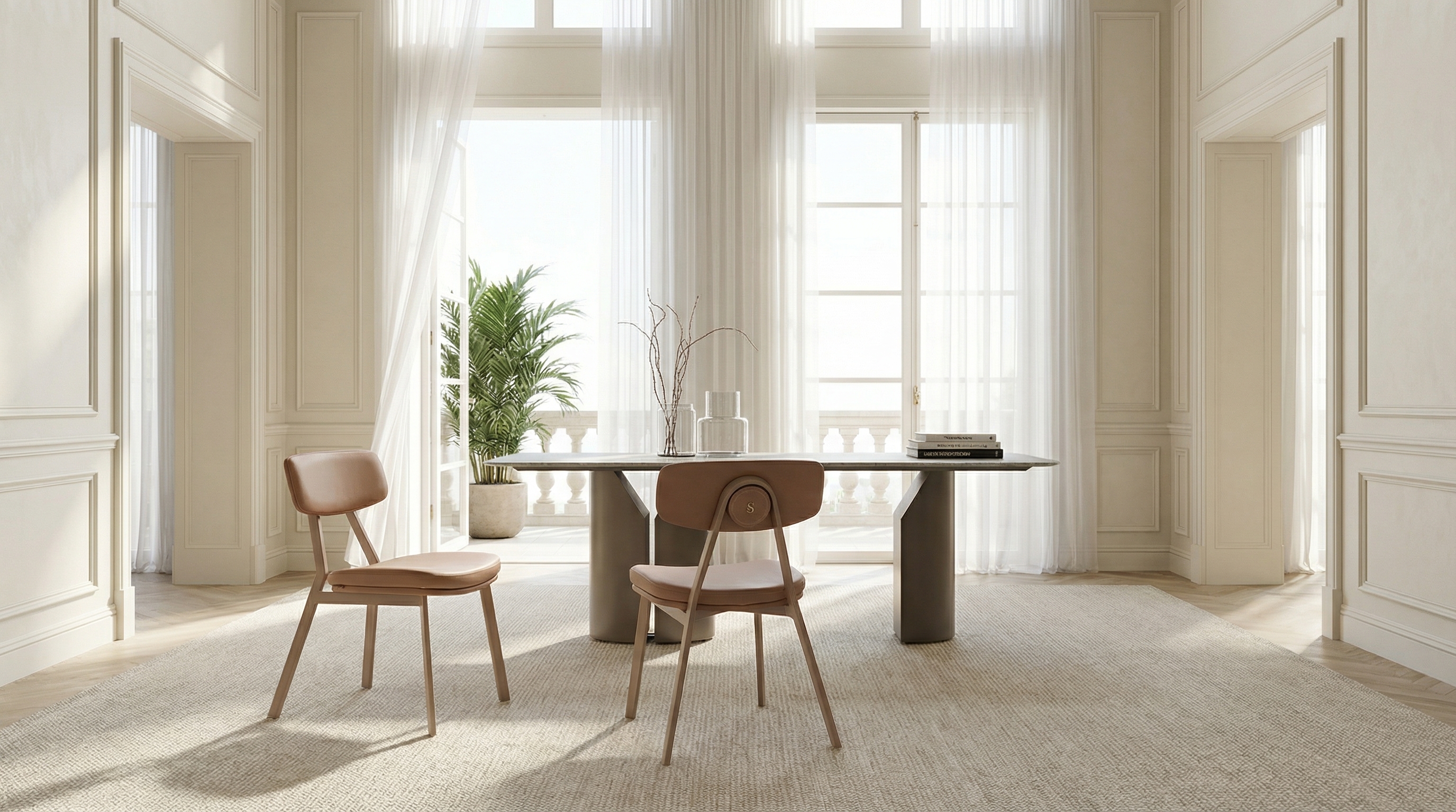 Коллекция Lans органично вписывается в интерьеры разного характера — от современной гостиной до кабинета или обеденной зоны.